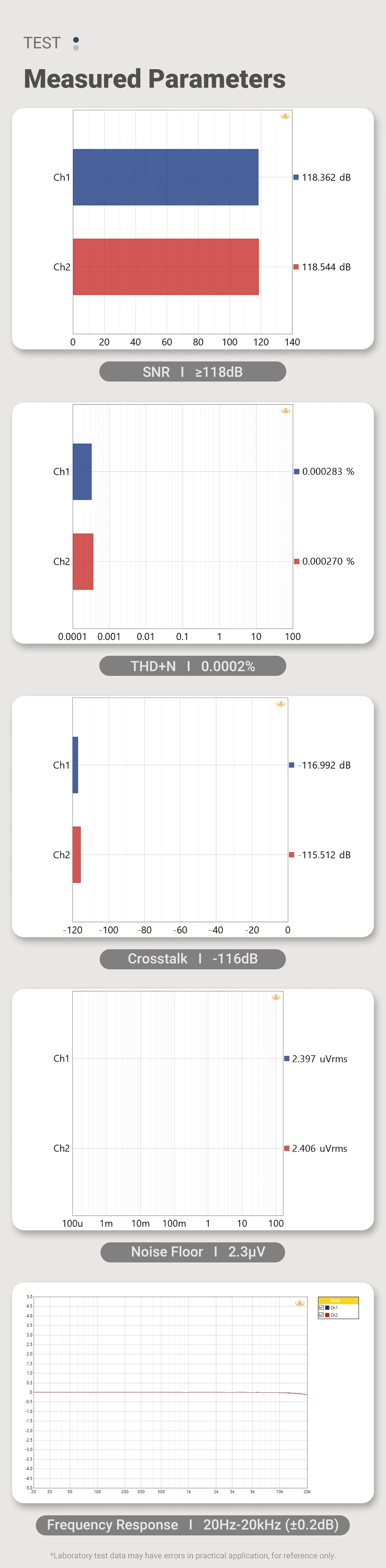 2. Outstanding Performance Parameters: With an ultra-low distortion rate of 0.0002% and a signal-to-noise ratio of 118dB, it ensures highly accurate sound reproduction. Supports playback of high-resolution music formats up to PCM 768kHz/32bit and DSD512.