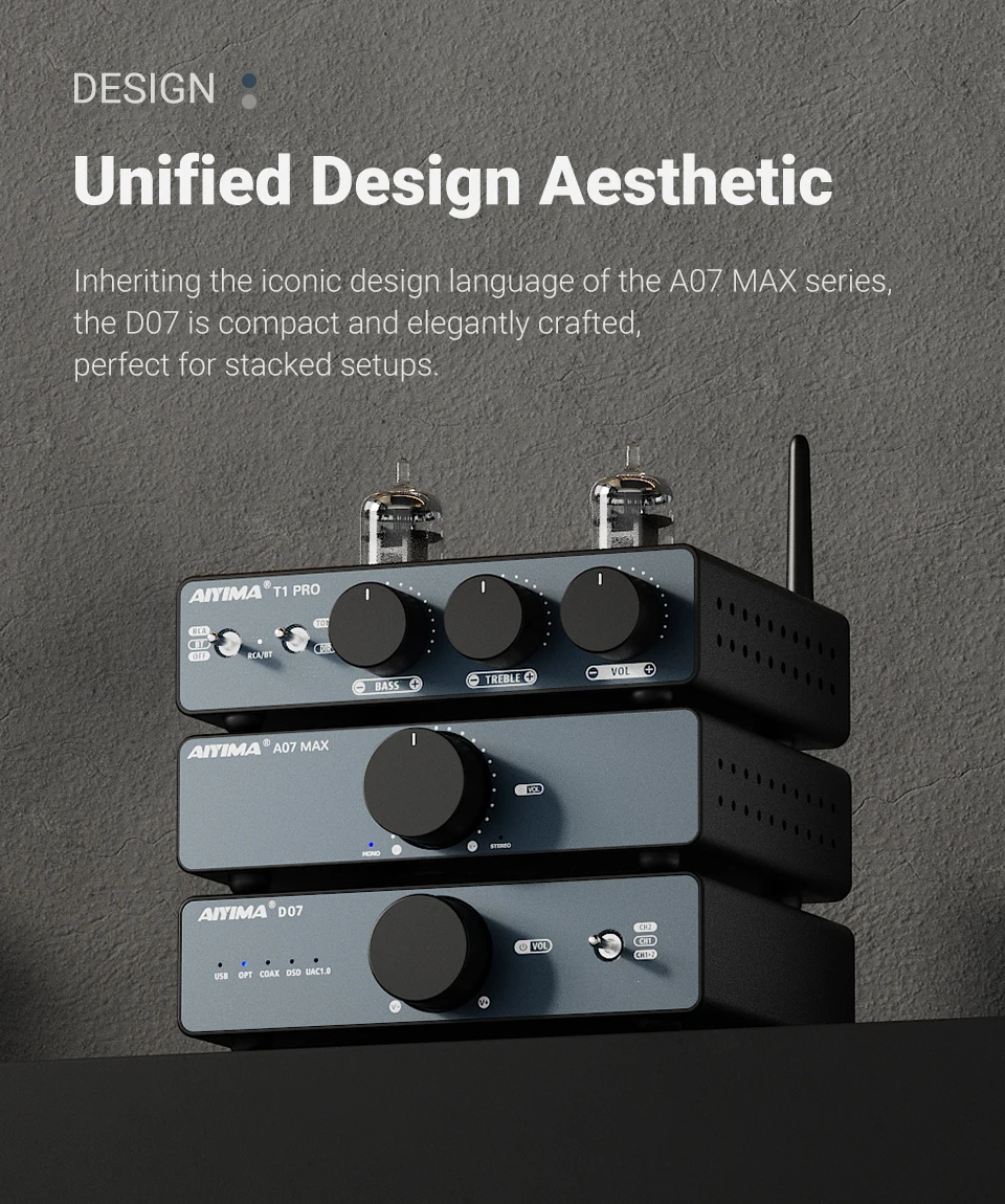 5. A Continuation of Classic Design: Inherits the iconic design language of the A07 MAX series—compact and refined, perfect for stacking and enjoying an elevated audio experience. The D07 pairs seamlessly with the A07 MAX and T1 PRO.