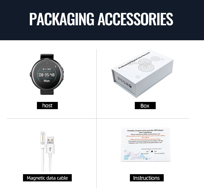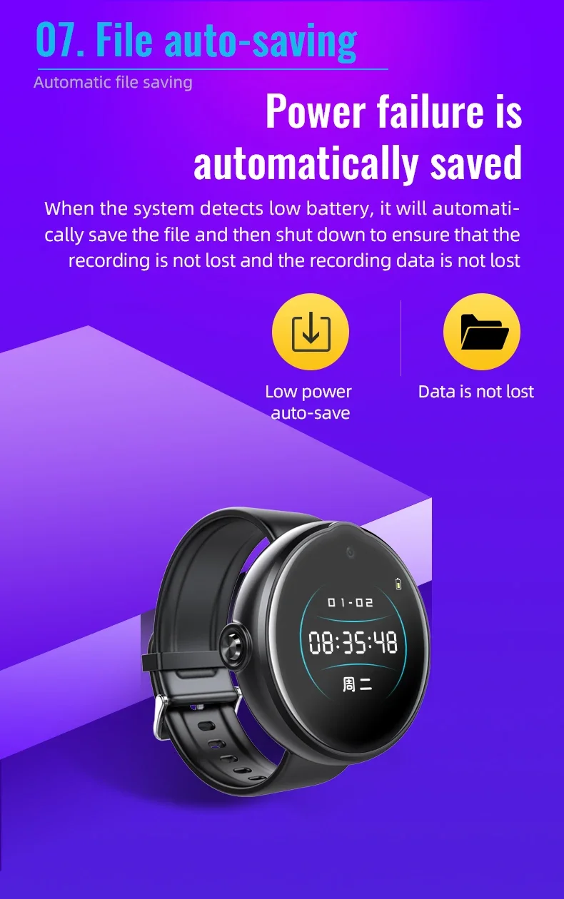 4. Long Battery Life: Voice recorder watch uses high density polymer lithium ion batteries to ensure recording time.