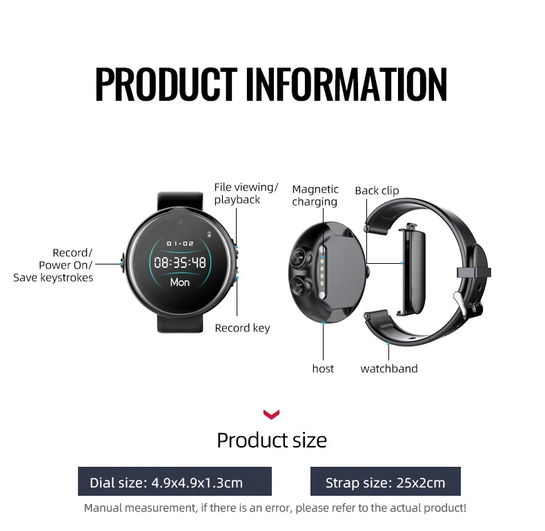 1. 1080P HD Wide Angle Lens: Digital voice recorder watch adopts a large wide angle lens, wide field of view, increase viewing range, and record wonderful moments.