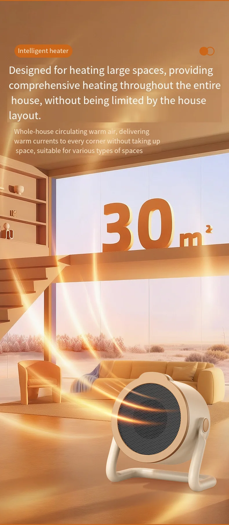 **Wide-Angle 360° All-Area Heating** — Delivers 40% broader hot air coverage compared to standard models, effectively heating small to medium-sized spaces of 10-15 square meters. Achieve even heat distribution, eliminating uncomfortable hot and cold zones for complete comfort in bedrooms, dormitories, offices, or living rooms.