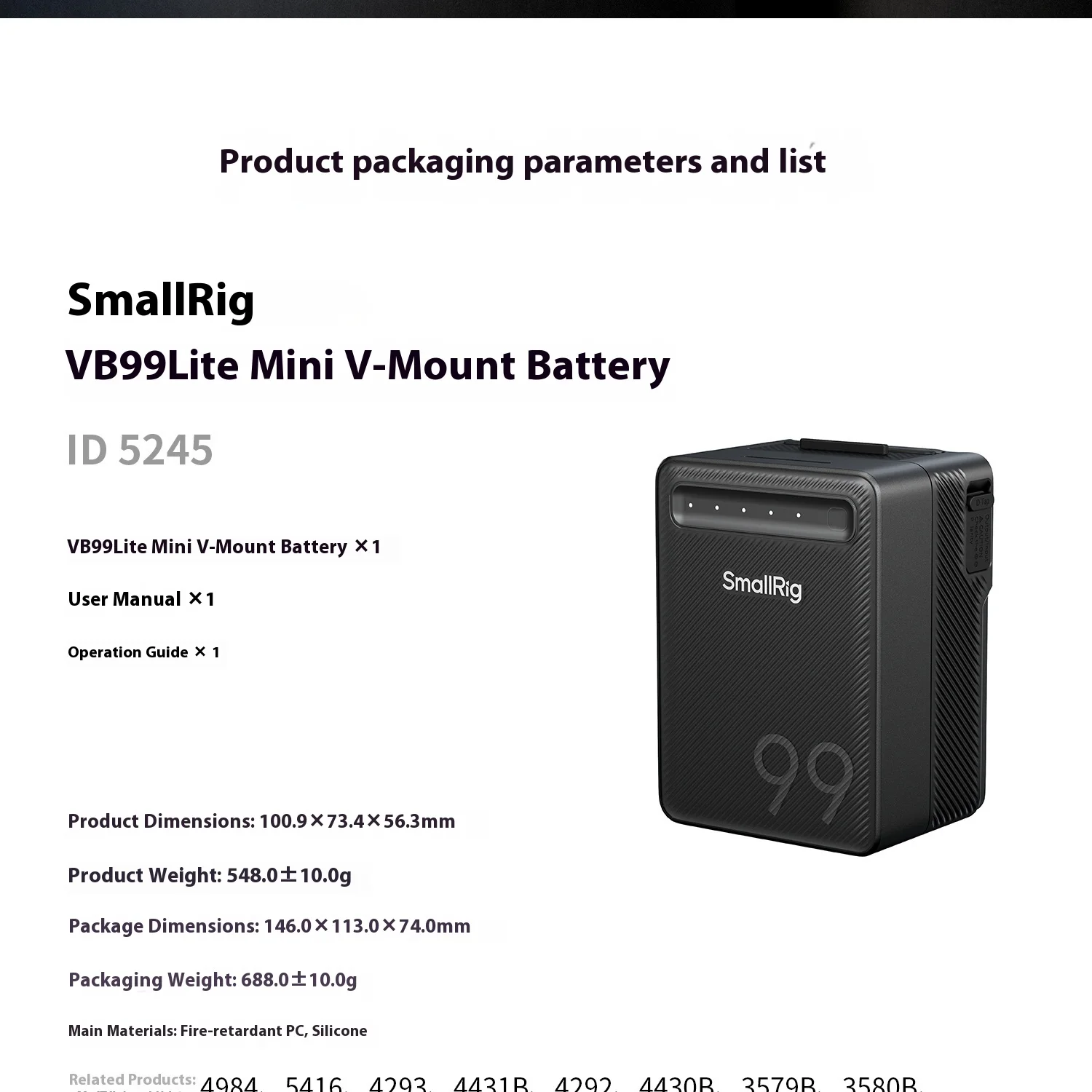SmallRig VB99 Lite V-Mount Battery Power Bank for IPhone/Android/PC,99Wh for LED Lights/Monitors/Rails/V-Lock Plate Accessories