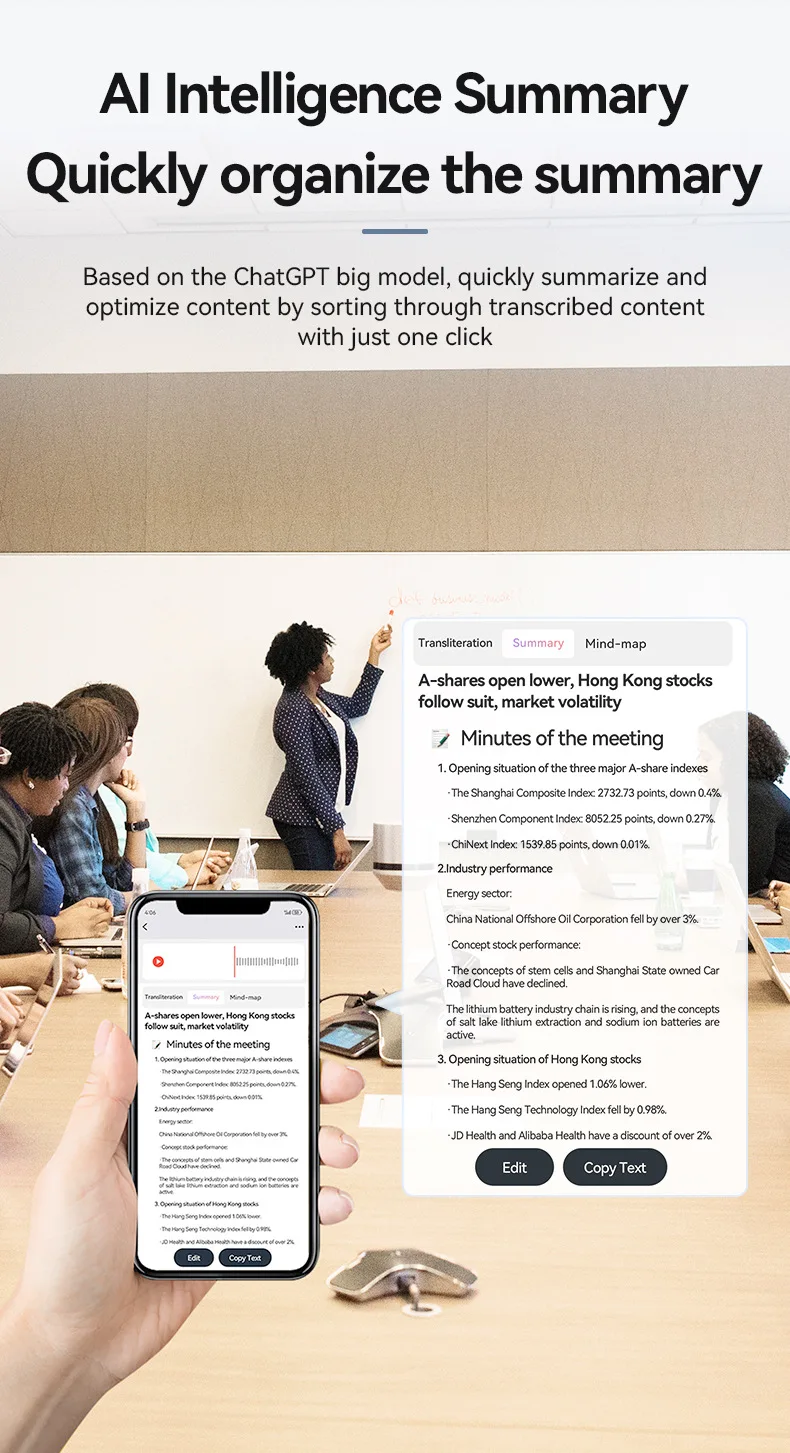* Simultaneous interpretation: supports multiple language recording and translation, real-time transcription and translation to meet different needs.