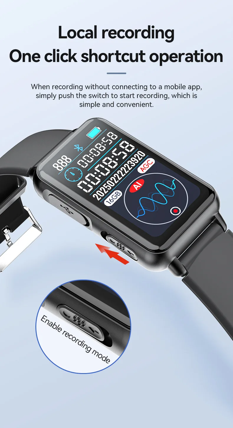 Smart Recording Watch AI Recorder Intelligent Real-time Transcription Translation Conversation Recording Bracelet APP Control